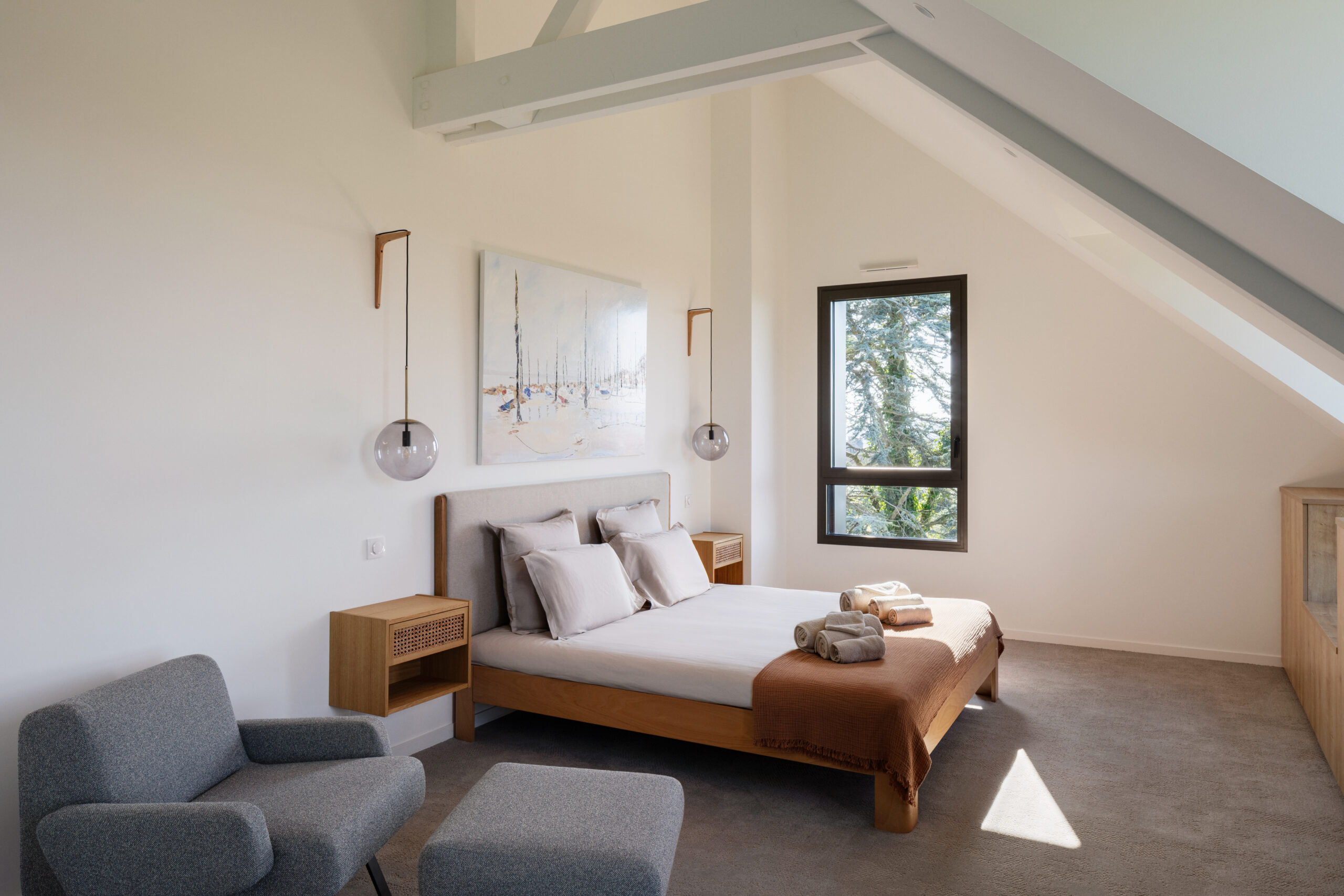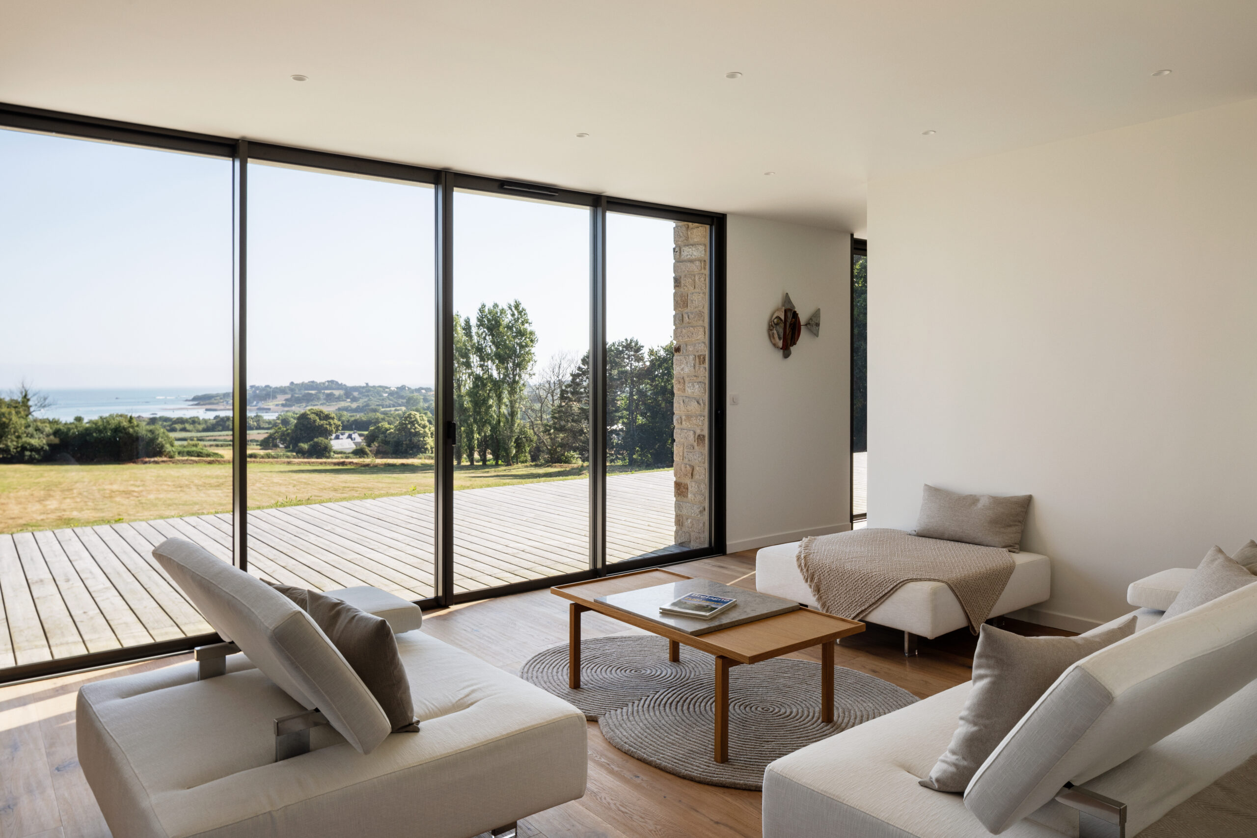 Chaque espace, pensé pour jouir des vues et du confort, participe à la nouvelle vie de cette demeure familiale, entre Armor et Argoat.