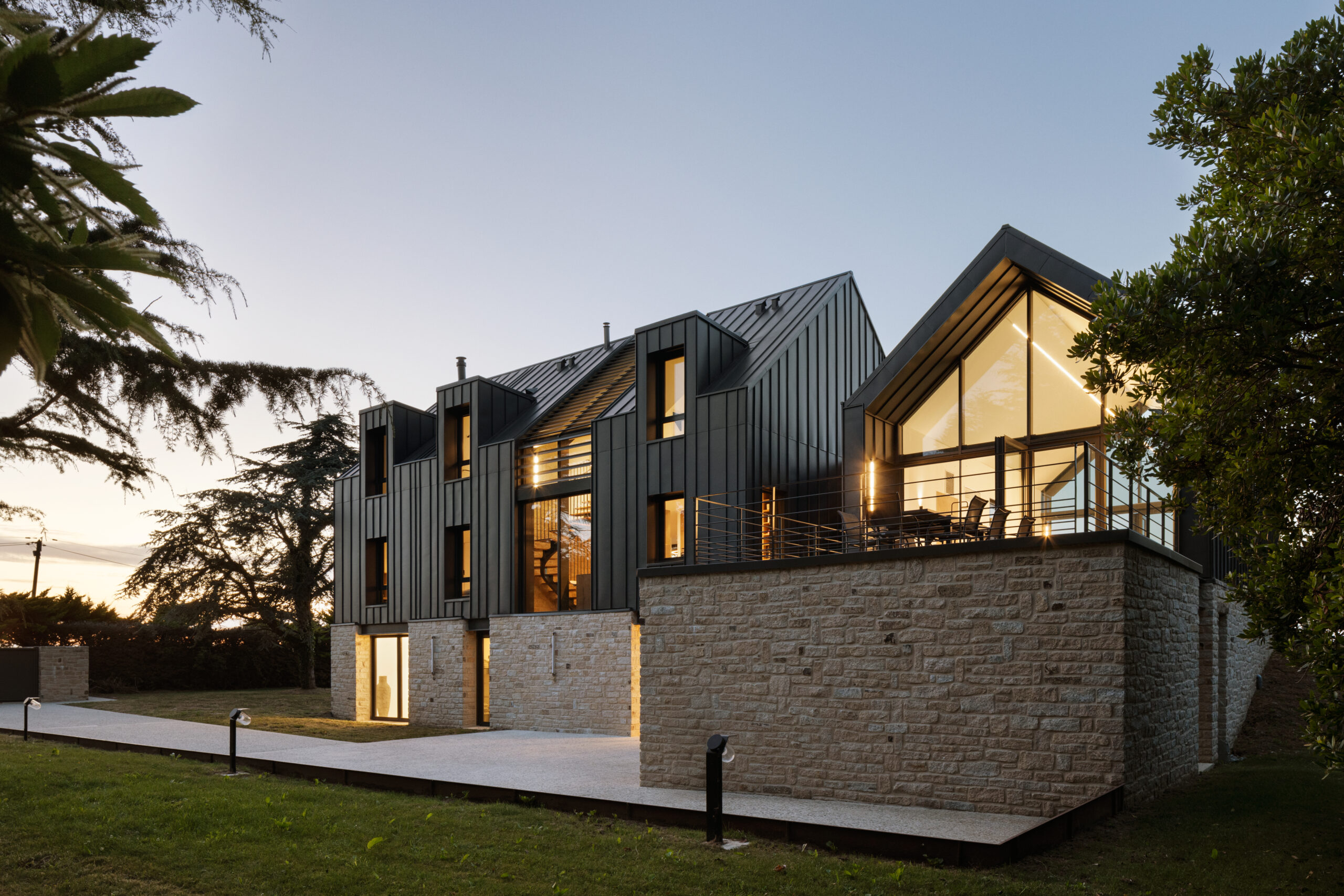 Matériaux : Granit de Languédias, Bardage zinc, Terrasse douglas